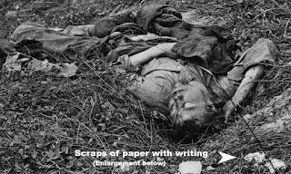 1. ANTIETAM: ANOTHER LOOK AT IMAGE OF FALLEN REBEL: You may have seen this Alexander Gardner photograph of the body of Rebel soldier at Antietam scores of times in books, magazines and elsewhere. According to Civil War photo expert William Frassanito, who explored the photo's secrets in his ground-breaking 1978 book, Antietam: The Photographic Legacy of America's Bloodiest Day, it probably was taken on Samuel Mumma's farm days after the Sept. 17, 1862 battle. Frassanito partly based his determination of the location on the row of Confederate bodies gathered for burial in the upper right background of the uncropped original image. But there's much more to explore in this sad photograph. Read more.